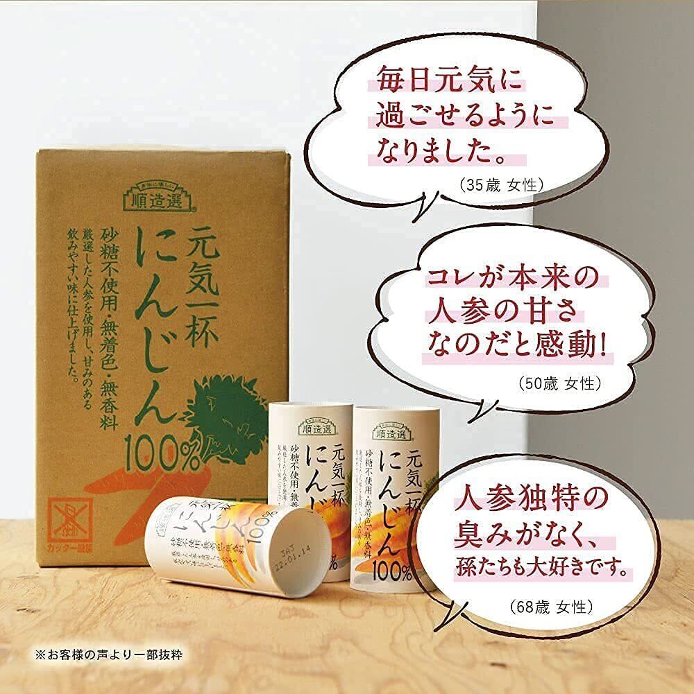 元気一杯 にんじんジュース 100% 195g×30本【順造選】砂糖不使用 食塩無添加 無着色 無香料 野菜ジュース 人参ジュース カートカン(紙容器)紙パック