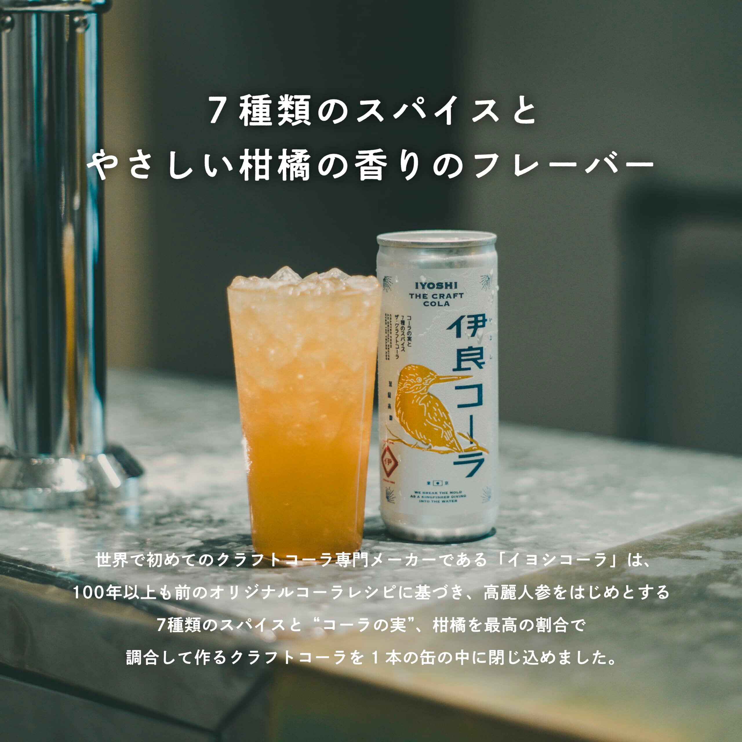 伊良コーラ(イヨシコーラ) クラフトコーラ 缶 250ml/30本 | コーラの実と7種のスパイス 高麗人参配合 天然素材100% 国産 リラクゼーションドリンク エナジードリンク エナドリ