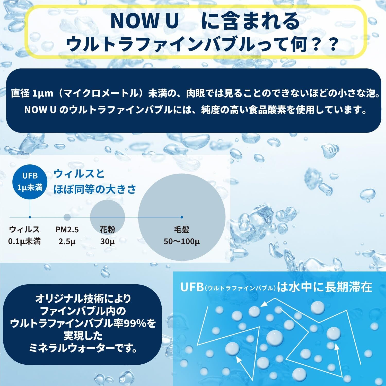 NOW U 高濃度ウルトラファインバブル水 (ウルトラファインバブル 約13億個/100ml) 酸素水 超軟水 pH8.4 / 水 軟水 ミネラルウォーター (500ml×24本 / 1箱)