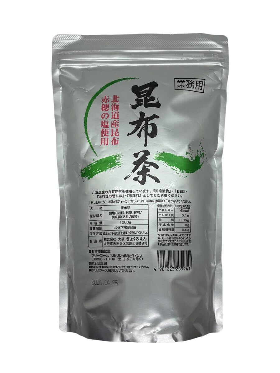 玉露園 昆布茶 北海道産昆布 大容量 業務用 スタンド袋 粉末 1kg 昆布 お茶 料理調味料 隠し味 ミネラル コブチャ 赤穂の塩 国産
