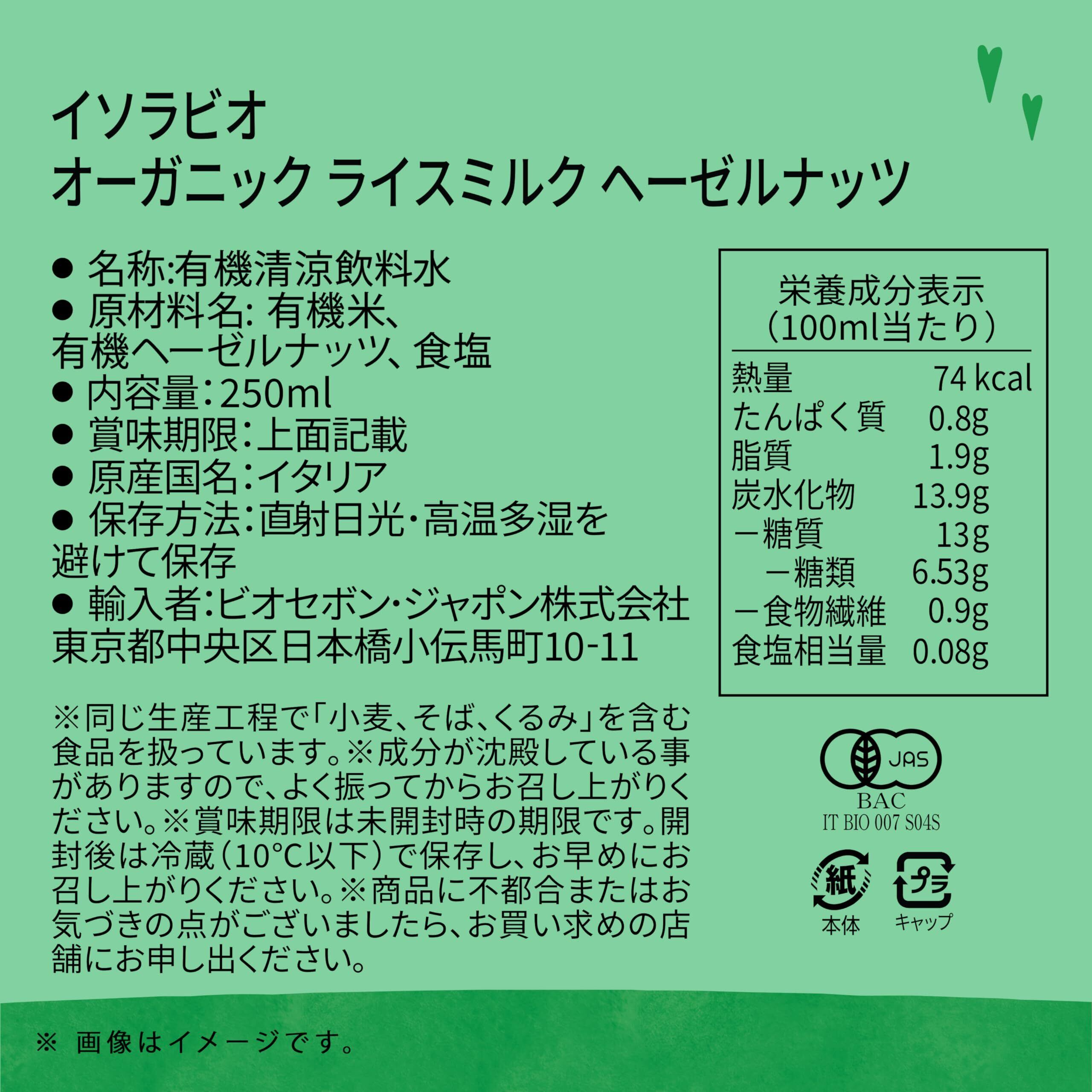 イソラビオ(isola BIO)オーガニック ライスミルク ヘーゼルナッツ 有機 250ml×24本