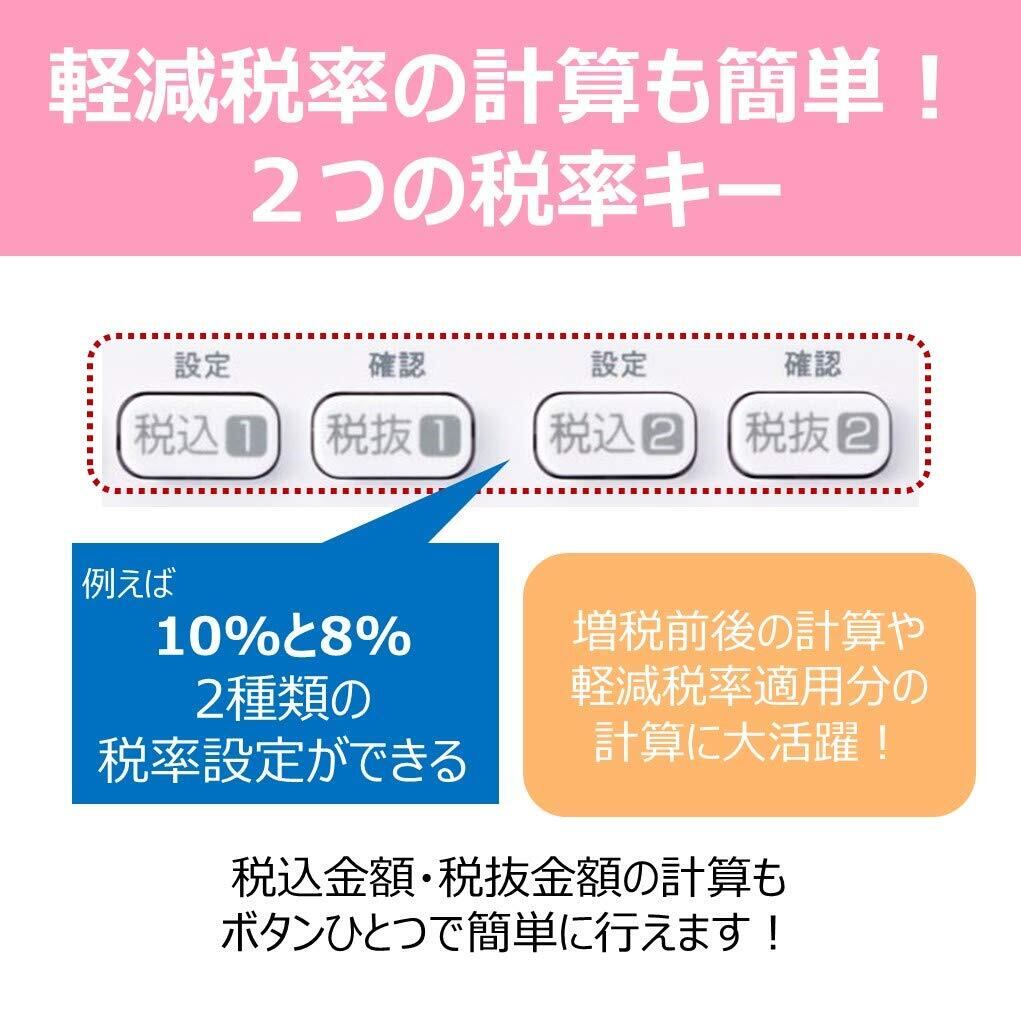 2つの税率登録キー搭載だから、軽減税率の計算にも便利