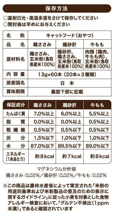 【玄米粉使用】日本産 猫用おやつ ねこぴゅーれ 無添加ピュア PureValue5 バラエティボックス 鶏牛 (鶏ささみ 鶏砂肝 牛もも) 60本入 (20本×3種)