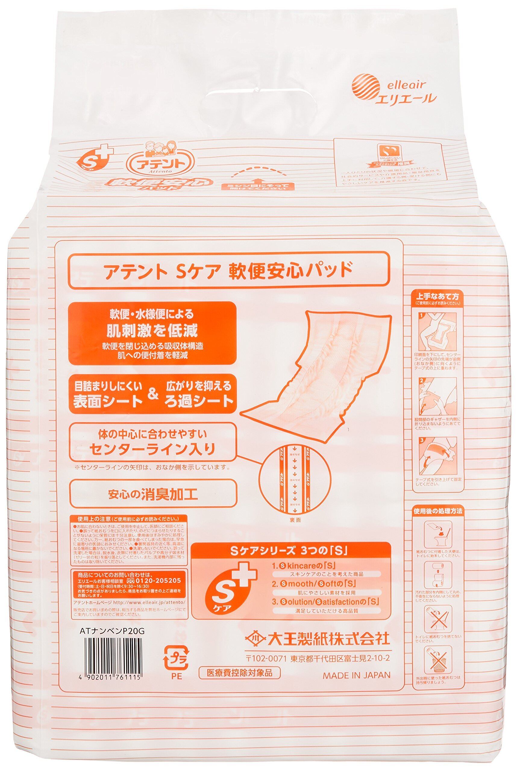 アテント Sケア 軟便安心パッド 20枚 30×56cm テープ式用 【寝て過ごす事が多い方】【病院・施設用】