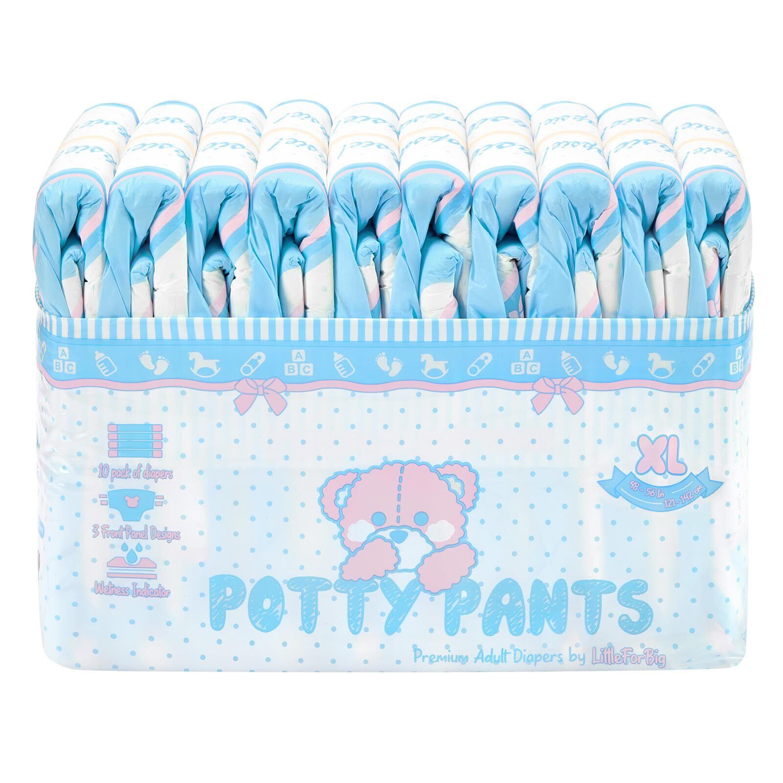 LittleForBig大人用おむつ 3種絵柄アソート【テディパンツ】変色お知らせサインの線 厚型 高吸収 テープ型 10枚入XL
