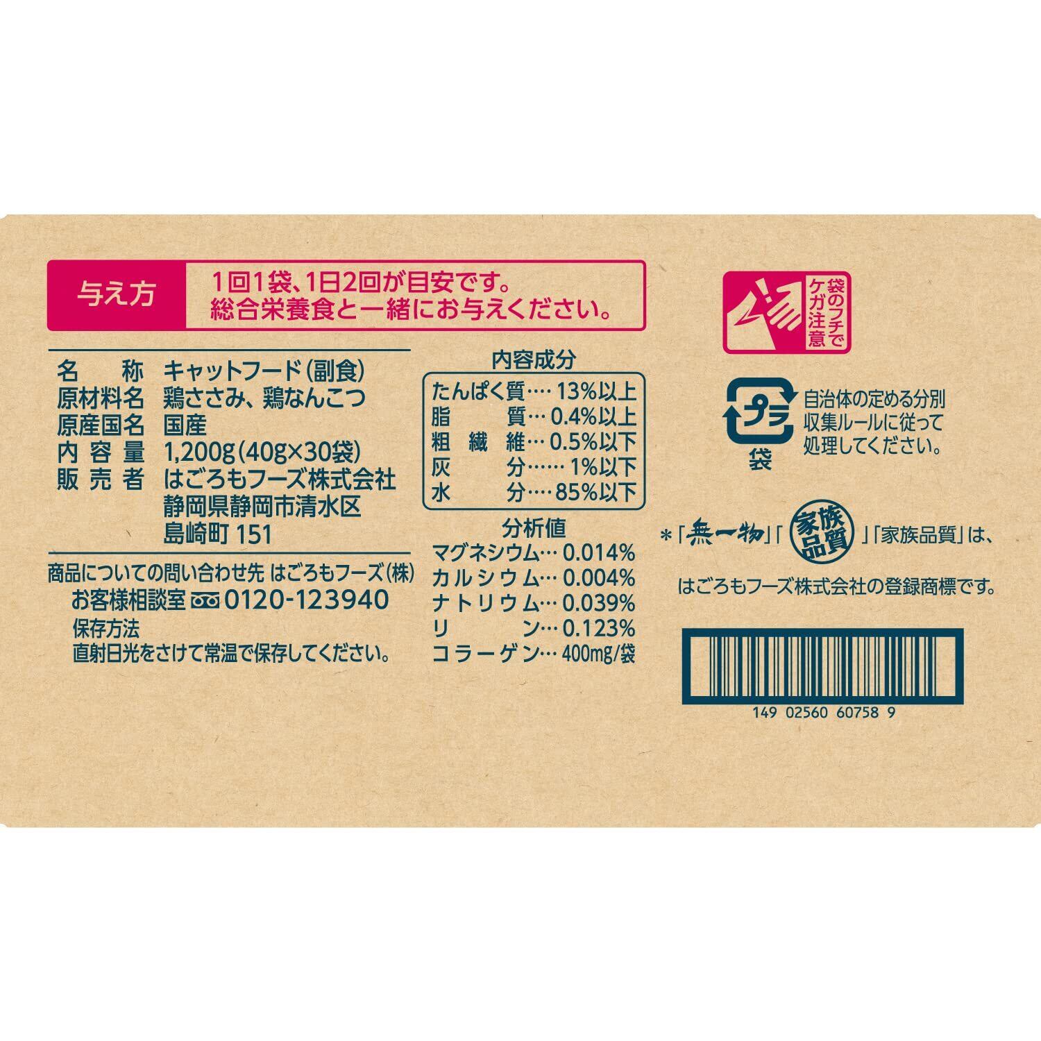 by はごろも 無一物 水煮 パウチ 鶏ささみ&なんこつ 【国産】 40g × 30個 - キャットフード ウェット ケース販売