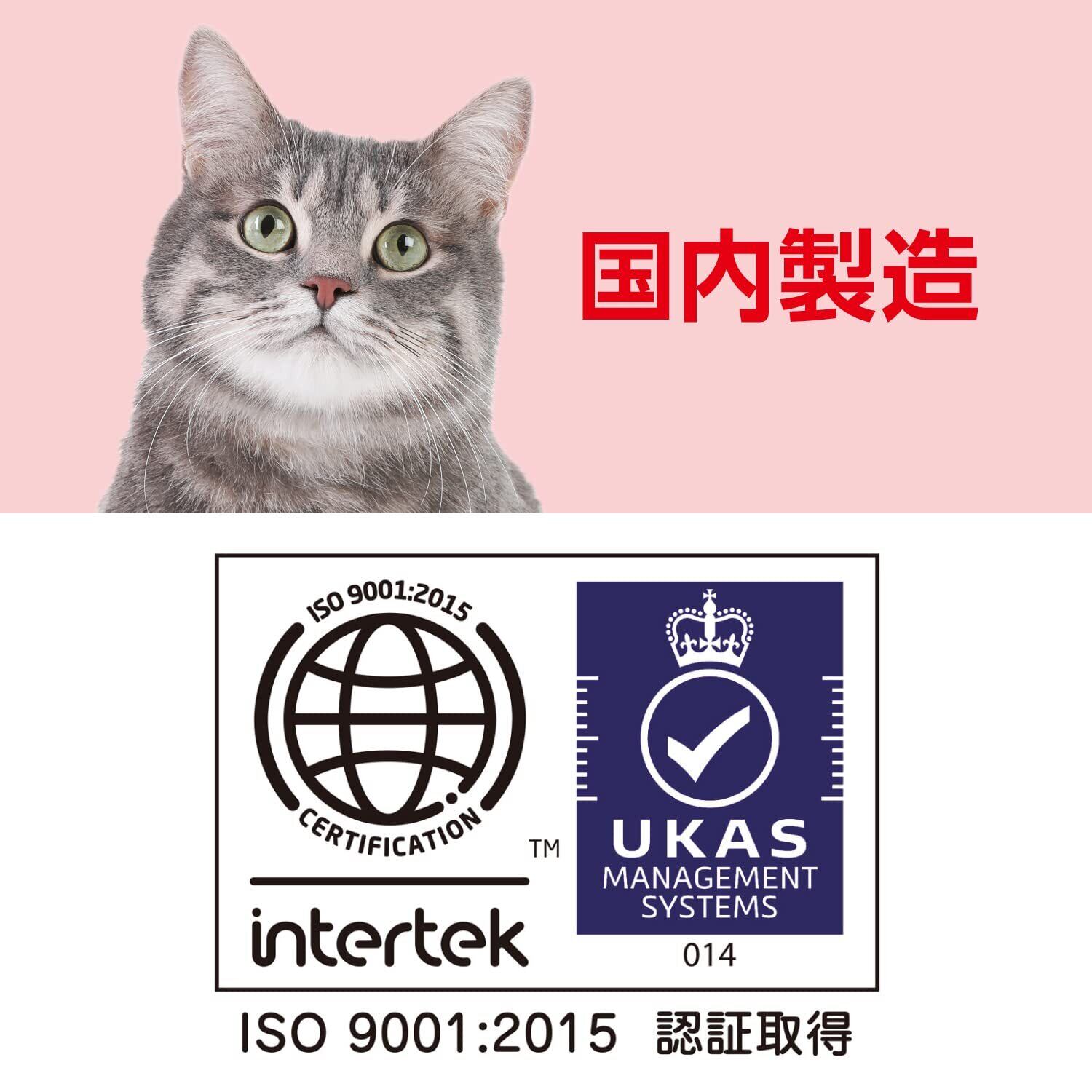 避妊・去勢後の太りやすい体質をサポートするカロリー設計で、栄養バランスに優れた配合に仕上げました。L-カルニチン配合。 マグネシウムの含有量を調整し、尿石の形成をしにくくしています(0.10%/標準分析値)。クランベリーパウダー配合。胃酸に負けず腸まで届く、殺菌乳酸菌(フェカリス菌)を配合し、お腹の健康を維持します。また、食物繊維が毛玉の排出を促し、吐き戻しを減らします。使いやすい450gの分包タイプ。1箱にフィッシュ味が5分包、チキン味が5分包入っています。飽きやすい猫ちゃんにおすすめです。キブルには着色料、香料を使用していません。安心安全の国産品で出来立ての風味とおいしさを逃がさず、いち早くお届けできます。