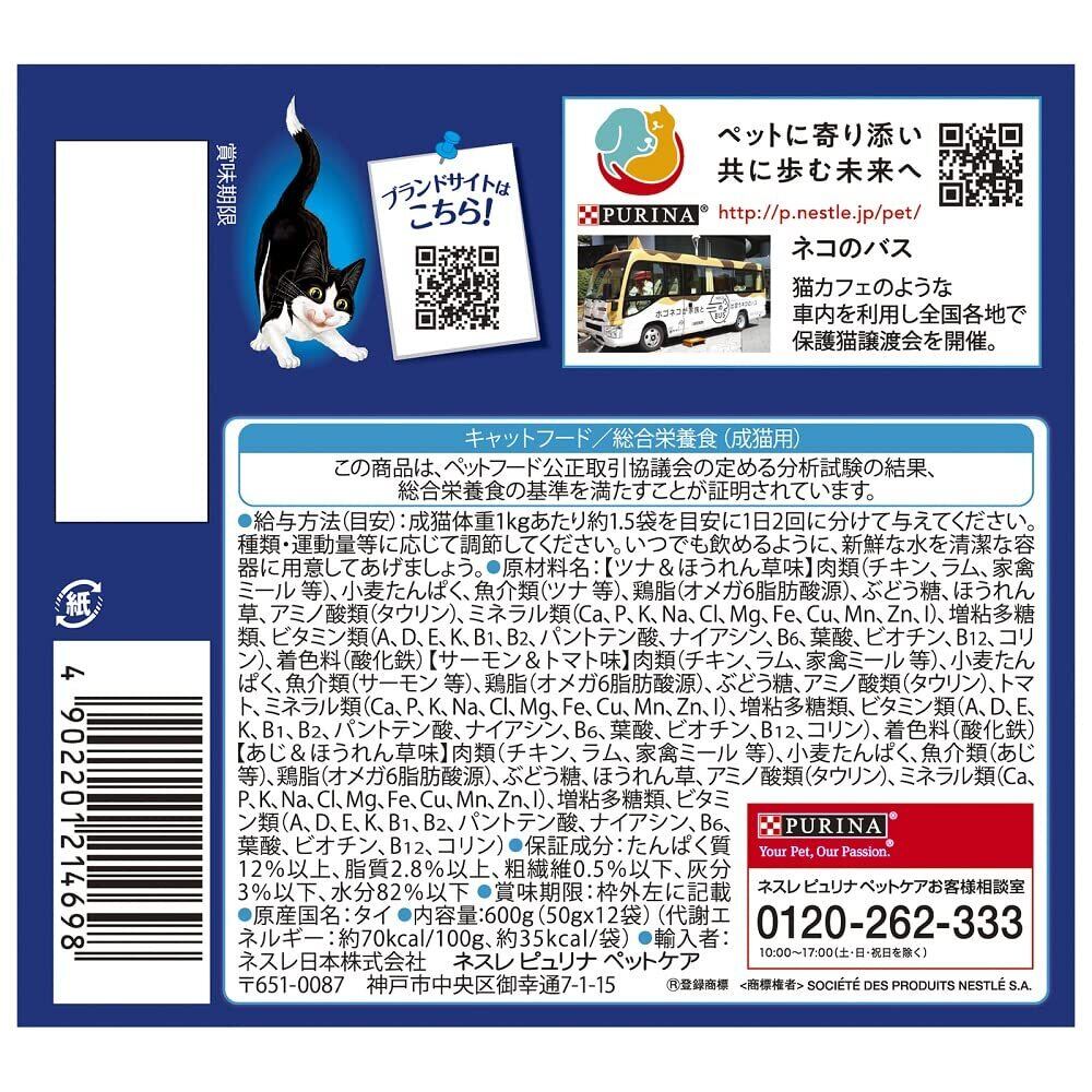 やわらかくほぐしたお魚のうまみを風味豊かな隠し味ゼリーで包み込んだごはん。 お魚大好きネコさんにツナ・サーモン・あじの3種類が入ったバラエティパック。 使用方法 成猫体重1kgあたり 約 1.5 袋を目安に1日2回に分けて与えてください。種類・運動量等に応じて調節してください。いつでも飲めるように、新鮮な水を清潔な容器に用意してあげましょう。