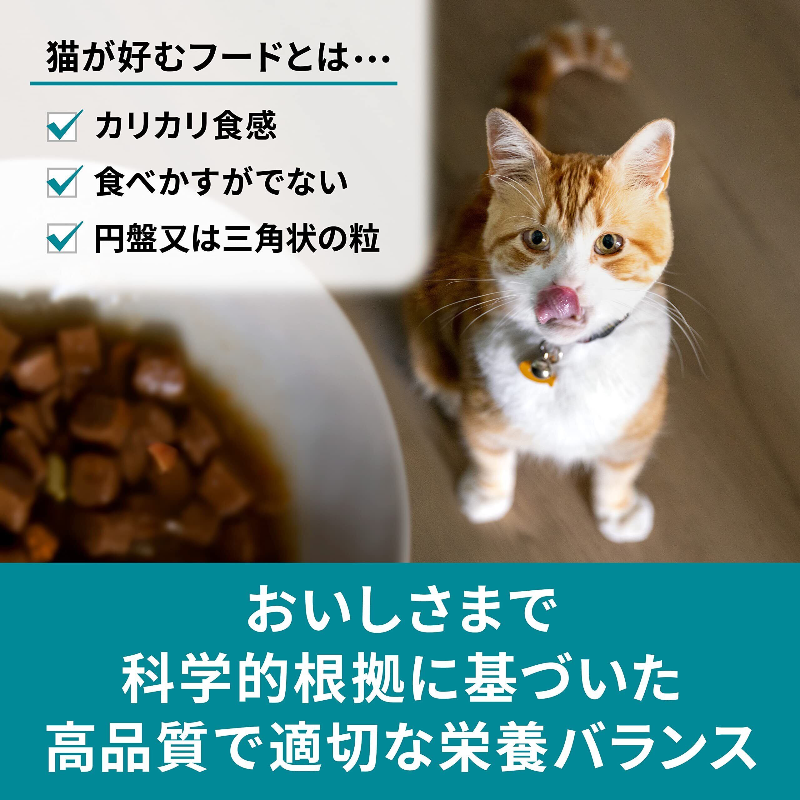 運動が不足しがちな高齢期の室内猫の毛玉ケアと体重管理に配慮し、適切な栄養バランスを実現したキャットフードです。ヒルズ独自の食物繊維ブレンドで体内の毛を無理なく排泄し、毛玉を軽減。また当社「シニア チキン 高齢猫用」ドライ製品と比べて、低カロリー(約19%減)で健康的な体重管理をサポート。適切なミネラルバランスで下部尿路の健康を維持します。ビタミンCとEを含む、科学的に証明された抗酸化成分によって本来の免疫力を維持。自然派成分で製品の酸化を防止し、着色料や合成香料は含まれていません。