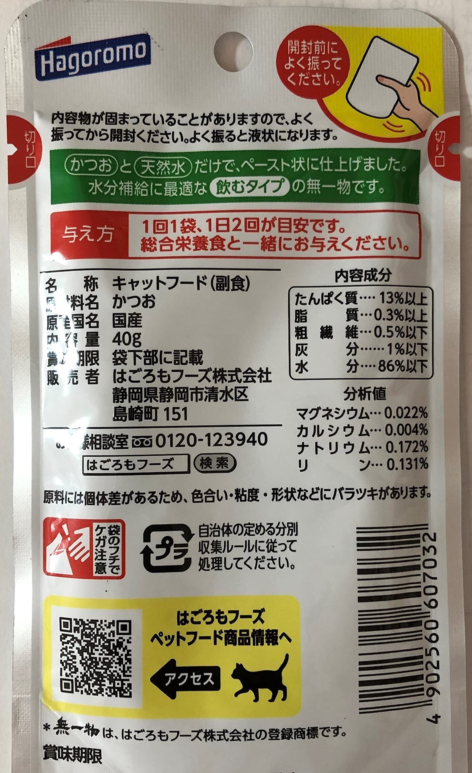 はごろも (国産) 飲む無一物 パウチ キャットフード かつお - 40g×12個セット(まとめ買い)