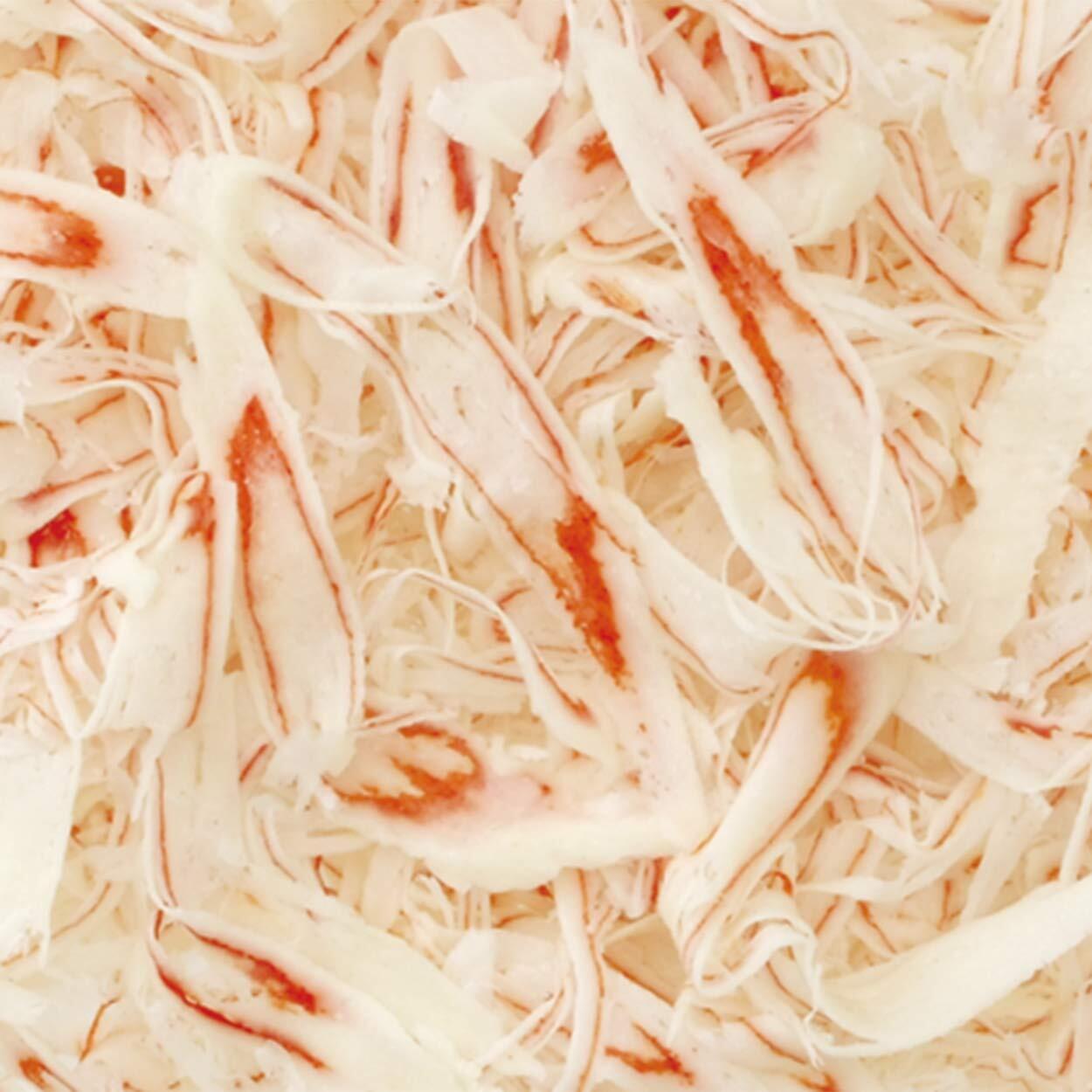 魚介類(白身魚・かに)、でんぷん類、食塩、植物性油脂、ソルビトール、調味料( アミノ酸等) 、着色料(紅麹・クチナシ)、タウリン