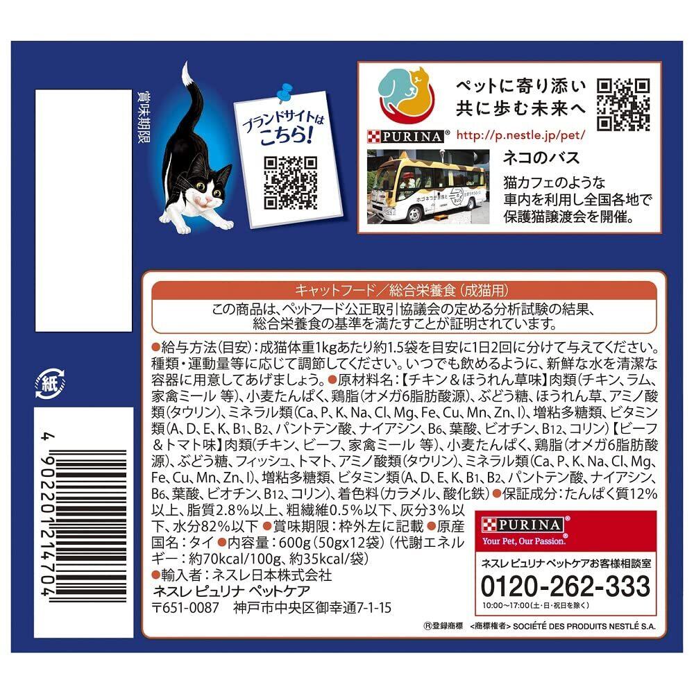 やわらかくほぐしたお肉のうまみを風味豊かな隠し味ゼリーで包み込んだごはん。 お肉大好きネコさんにチキン・ビーフの2種類が入ったバラエティパック。 使用方法 成猫体重1kgあたり 約 1.5 袋を目安に1日2回に分けて与えてください。種類・運動量等に応じて調節してください。いつでも飲めるように、新鮮な水を清潔な容器に用意してあげましょう。