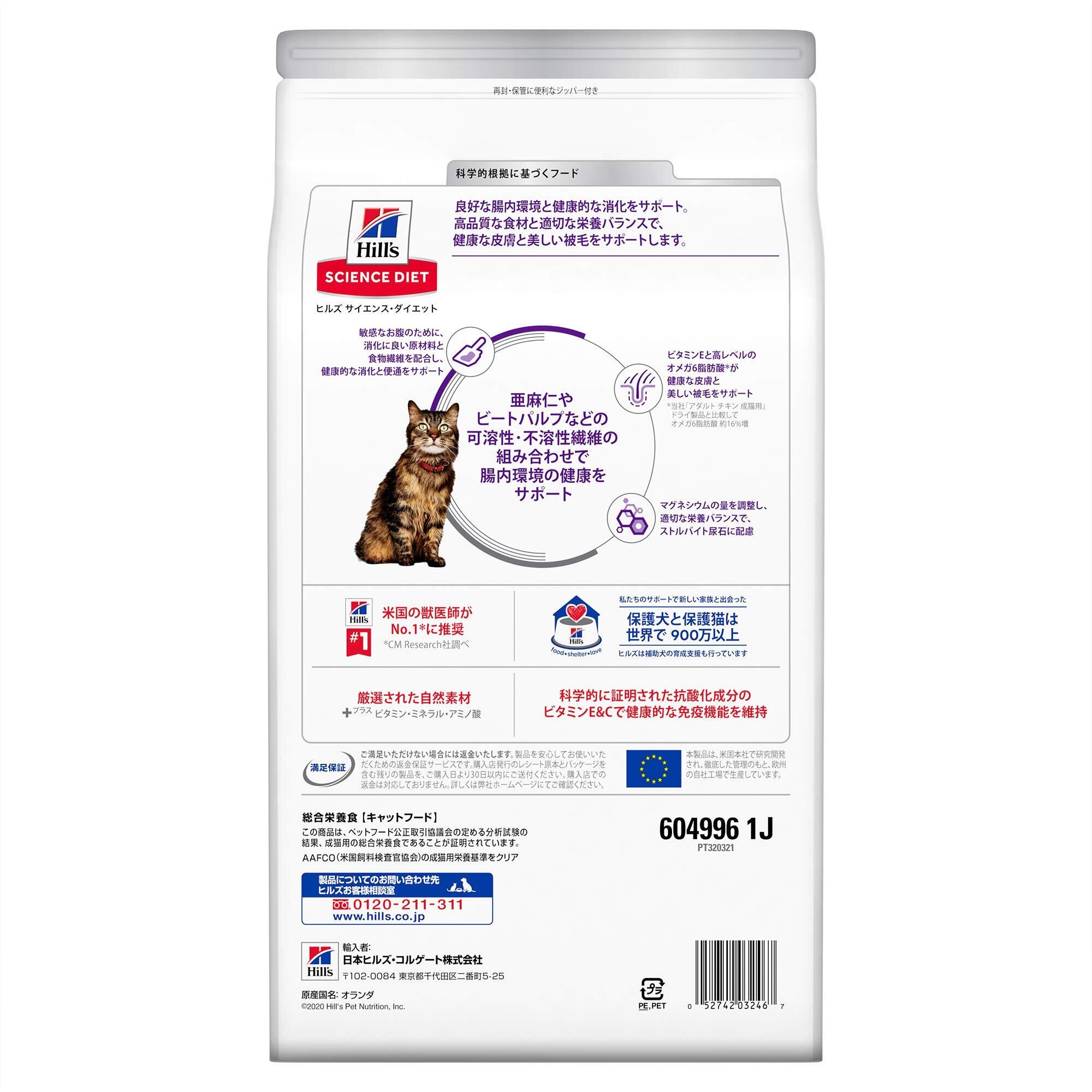 ヒルズ サイエンス・ダイエット キャットフード 敏感なお腹と皮膚の健康サポート チキン 2.5kg 1歳以上 成猫用 高齢猫用 アダルト シニア ドライ お試し トライアル