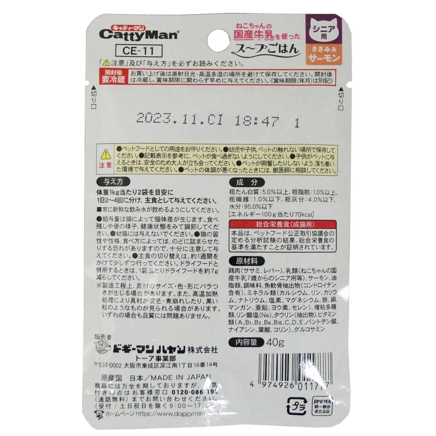 キャティーマン (CattyMan) 猫ちゃんの国産牛乳を使ったスープごはん ささみ&サーモン シニア用 40g×10袋
