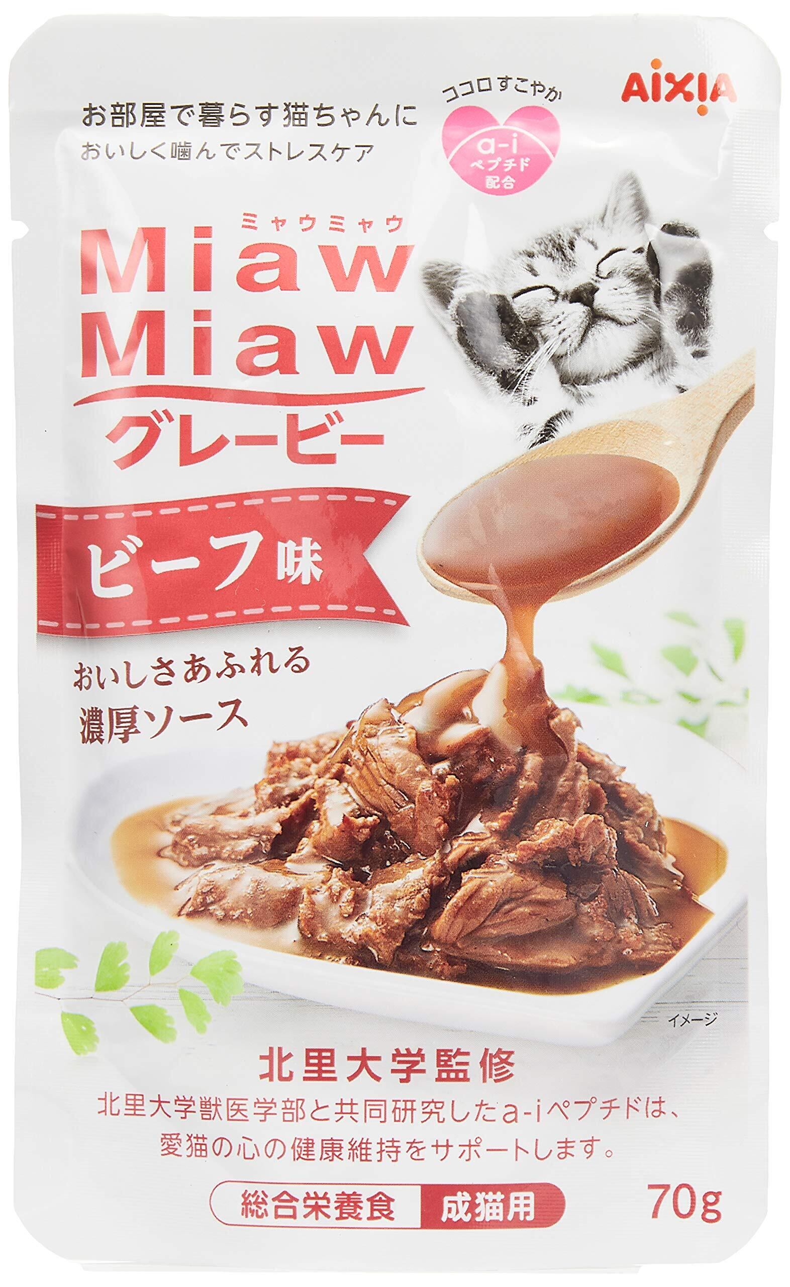 ミャウミャウ (MiawMiaw) グレービー ビーフ味 成猫用 総合栄養食 70グラム (x 12) キャットフード