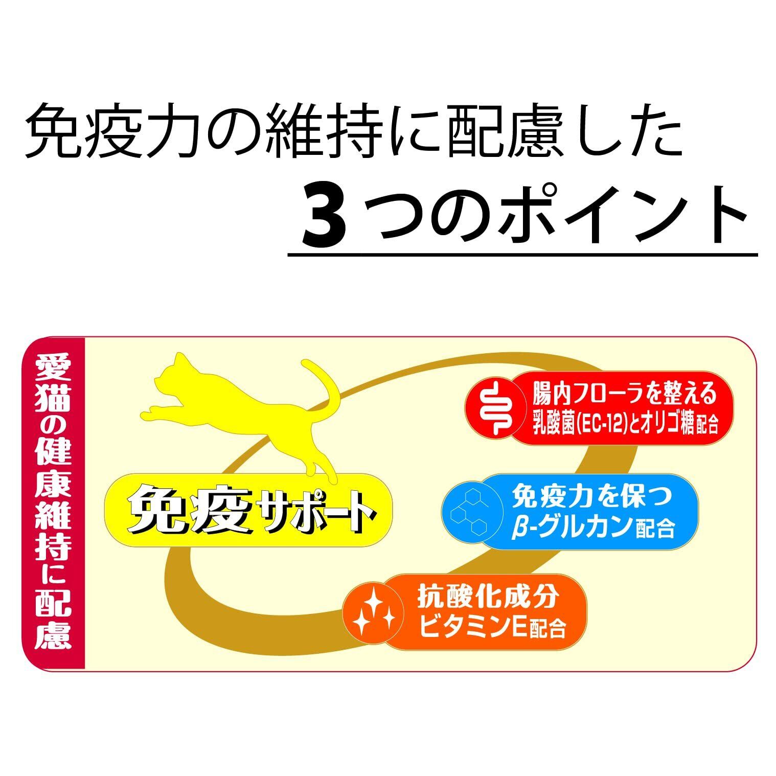 【愛猫の健康維持に配慮】 免疫力の維持に配慮した3つのポイント 1、腸内フローラを整える乳酸菌(EC-12)とオリゴ糖を配合。 2、愛猫の健康を維持し免疫をサポートするβ-グルカンを配合 3、抗酸化成分である、ビタミンEを配合 なめて食べられるペーストタイプで、食べやすく仕立てました。