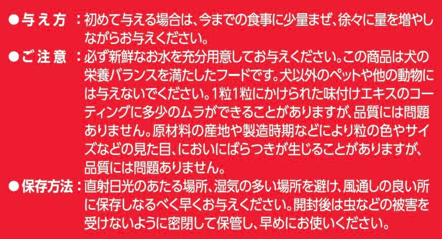 この商品は犬の栄養バランスを満たしたフードです。犬以外のペットや他の動物には与えないでください。