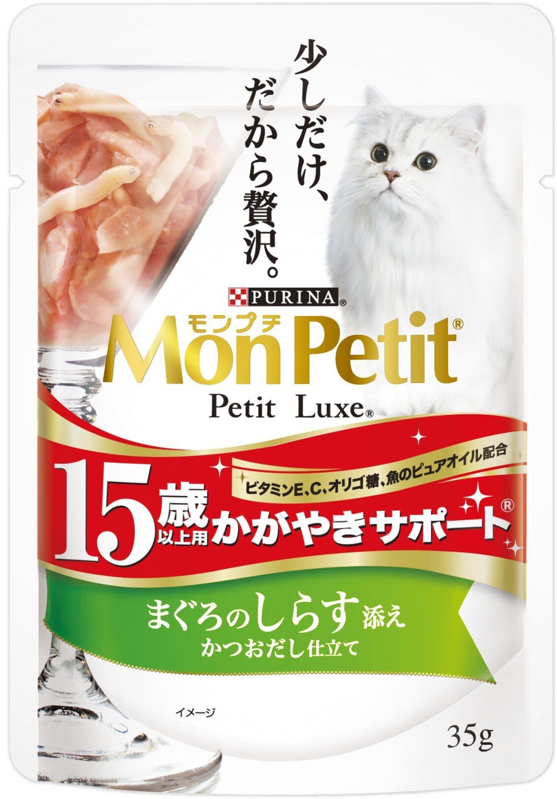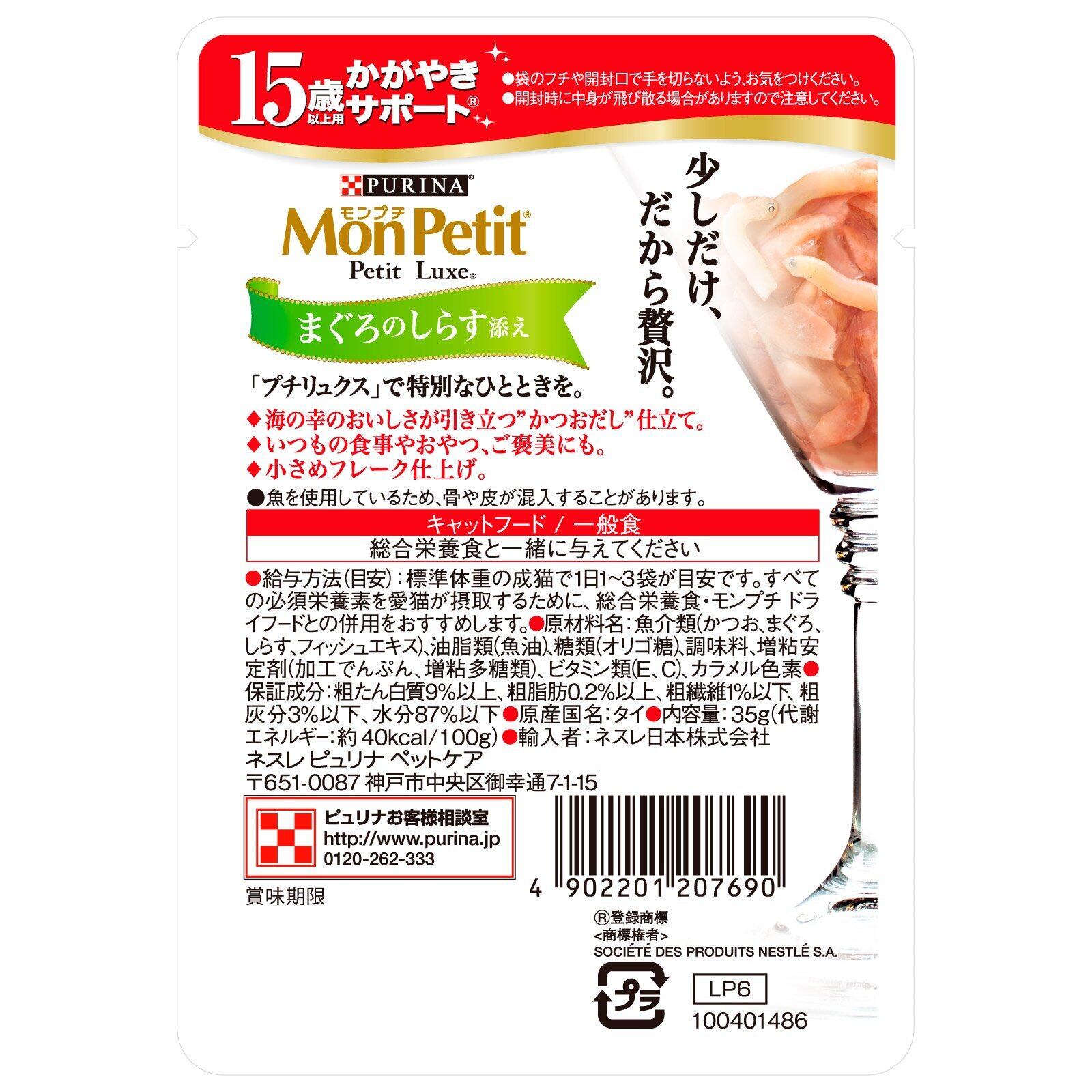 モンプチ プチリュクス パウチ 高齢猫用(15歳以上) かがやきサポート まぐろのしらす添え 35g×12袋入り (まとめ買い) [キャットフード]