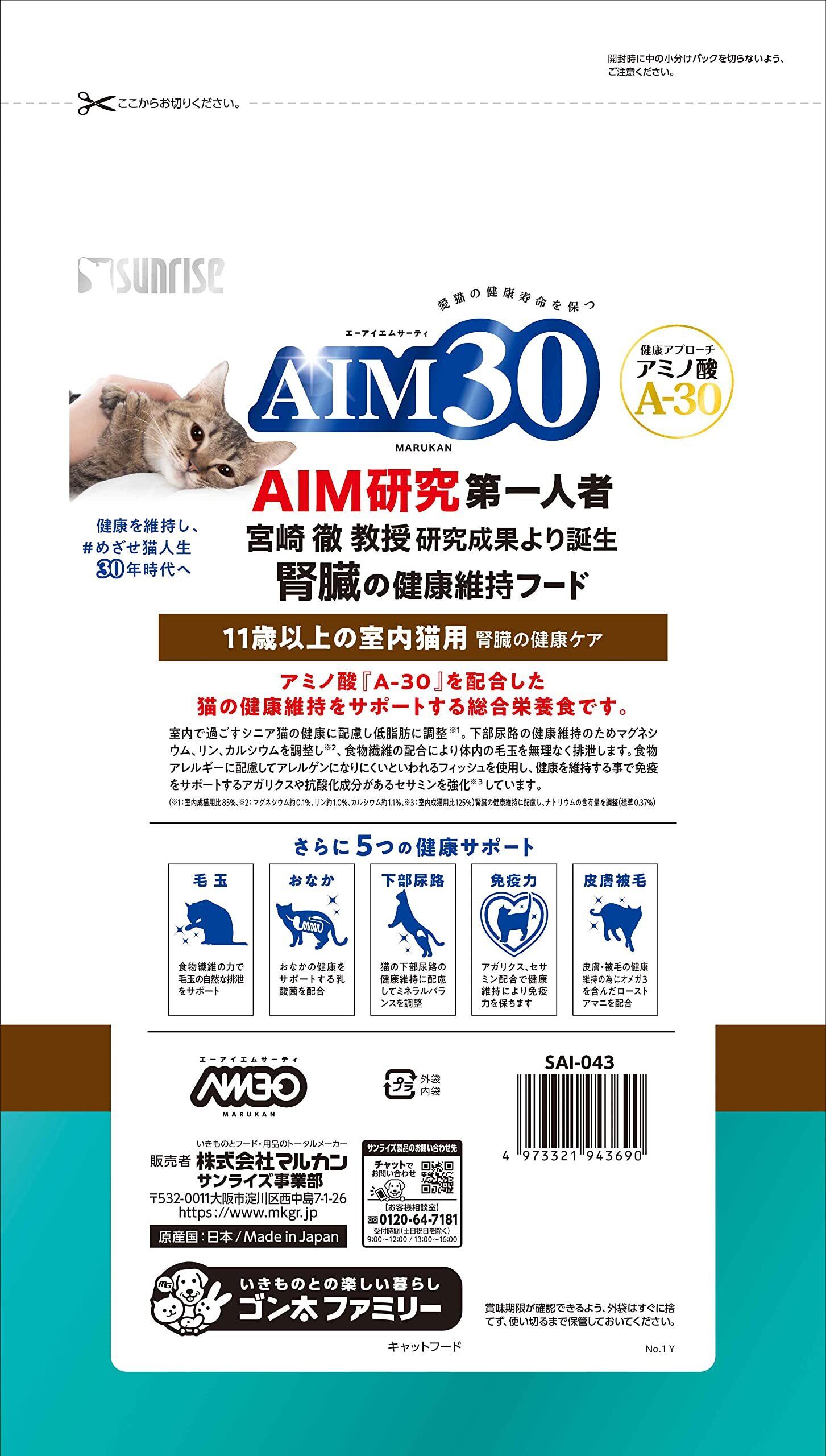AIM30 11歳以上の室内猫用 腎臓の健康ケア フィッシュ 1.2kg