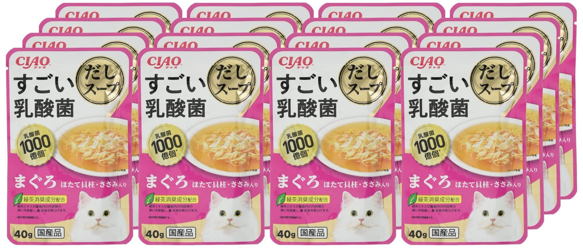 チャオ (CIAO) すごい乳酸菌だしスープ まぐろ ほたて貝柱・ささみ入り 40g 16個セット
