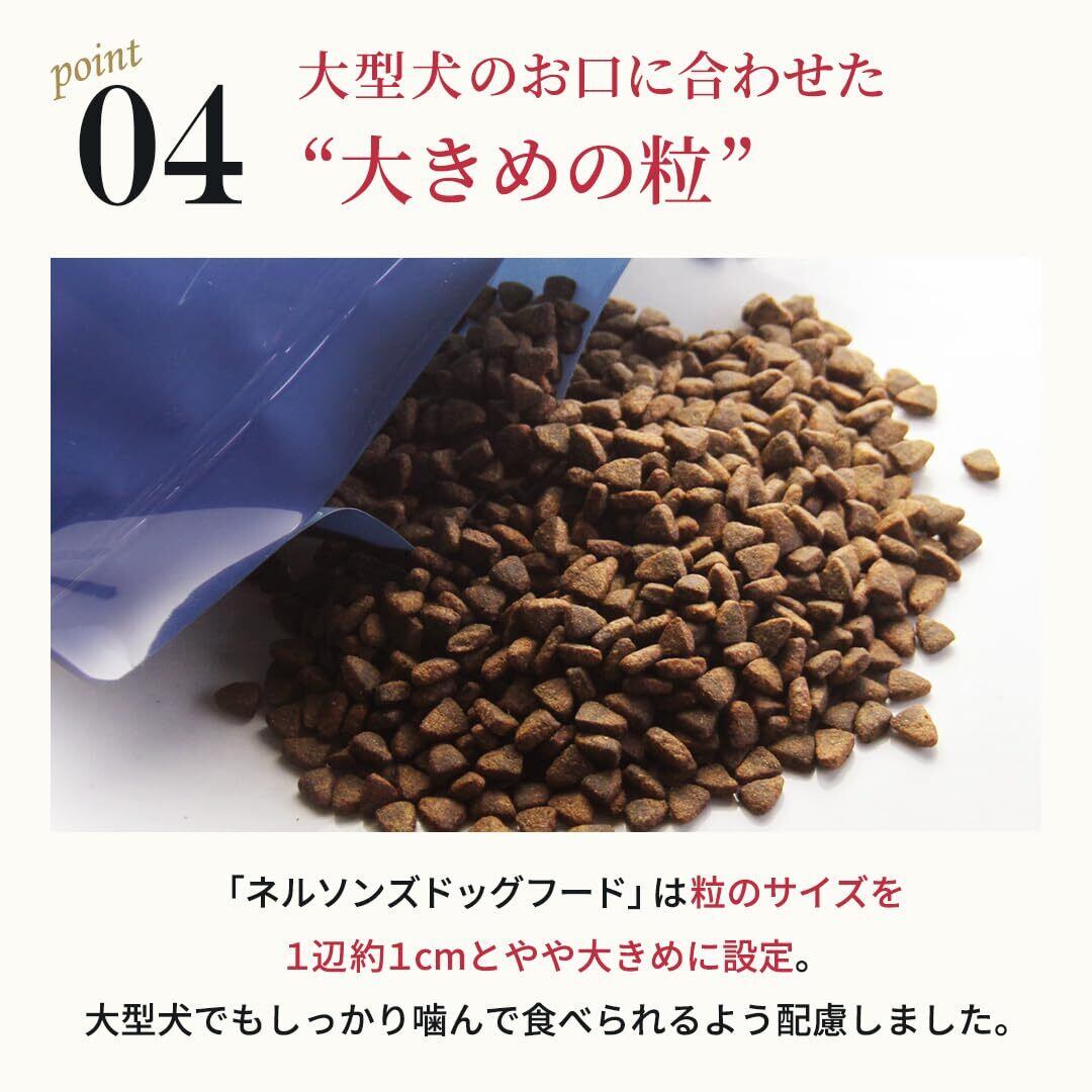 ✅【大型犬のお口に合わせた”大きめの粒”】大型犬でもしっかり噛んで食べられるよう、粒のサイズを1辺約1cmとやや大きめに設定しました。