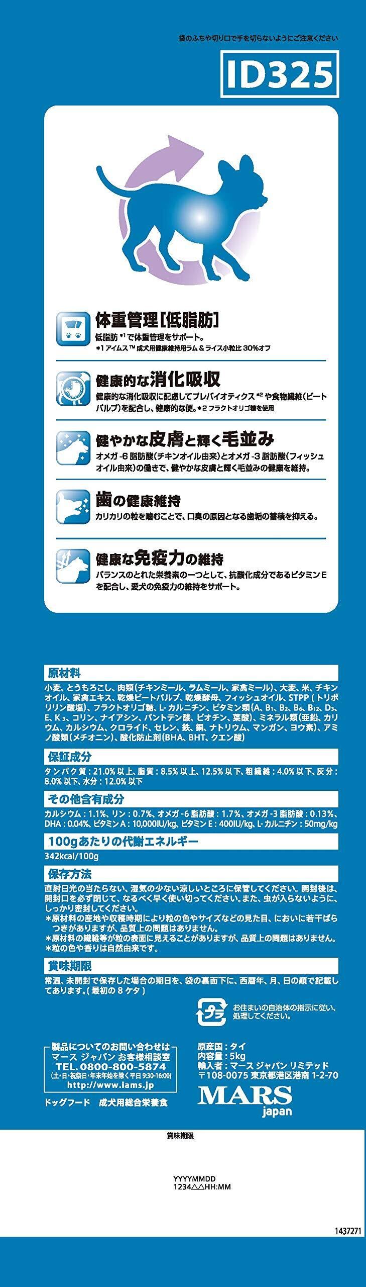 アイムス (IAMS) ドッグフード 成犬用 体重管理用 小粒 ラム&ライス 5キログラム (x 1)