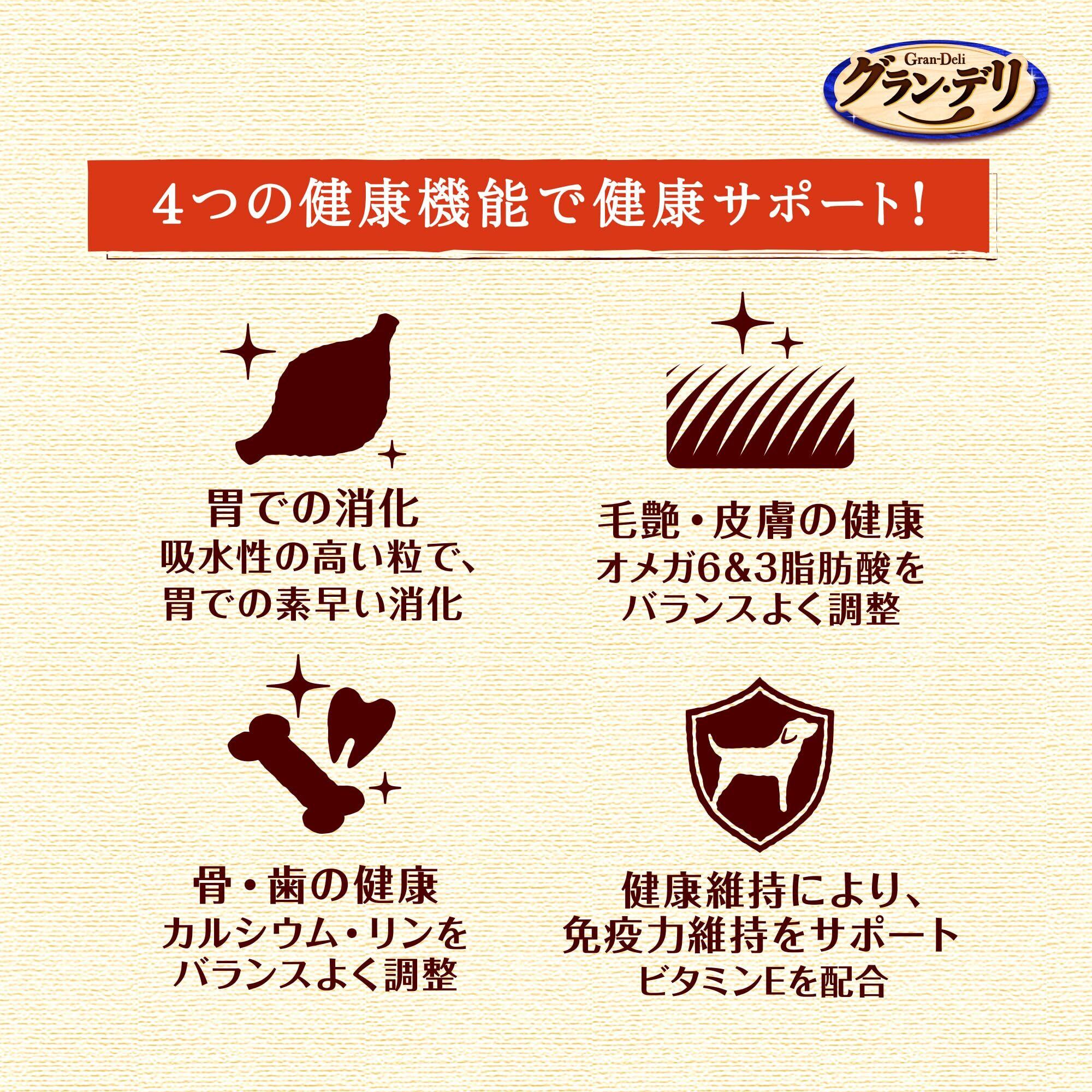 ・素材を美味しくフレッシュパックした国産プレミアムドッグフードです。 ・よく噛むことで早食いを軽減する独自の粒設計(噛みやすい粒サイズ、たわら型の独自の粒形状、かみくだきやすい軽い食感)。 ・フリーズドライ・エアドライの素材を、酸化を防ぐ鮮度維持包装をすることで、いつでも美味しくワンちゃんが喜びます。 ・愛犬が大好きなチキン&ビーフ入りです。