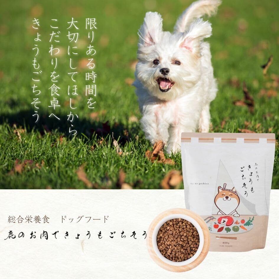 鹿のお肉できょうもごちそう ドッグフード 鹿肉 ベニソン 全年齢 国産 無添加 小麦グルテンフリー チキン不使用 小型犬 シニア 犬のご飯 総合栄養食 800g