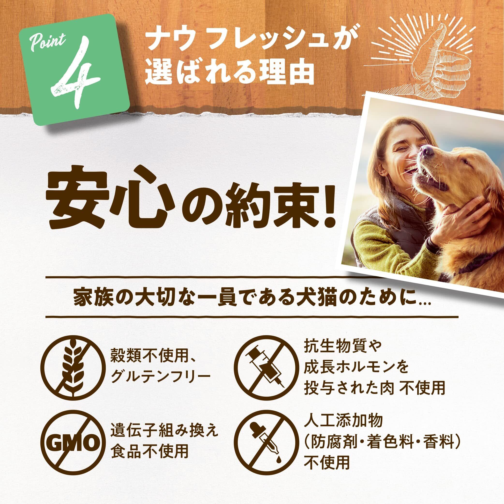 【新鮮という品質をお届け】ナウフレッシュは、家族の大切な一員である愛犬のために、トコトン新鮮にこだわったナチュラル×ミールフリーのプレミアムフードです。