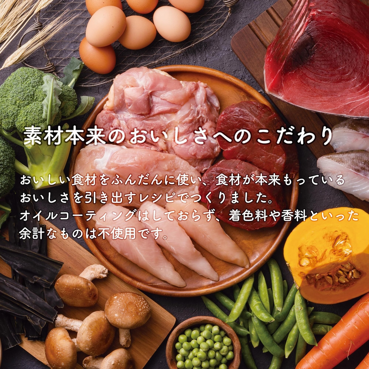 ✅【素材本来のおいしさへのこだわり】おいしいごはんは人も愛犬もしあわせにしてくれる・・・そんな理念のもと、おいしい食材をふんだんに使い、食材が本来もっているおいしさを引き出すレシピでつくりました。オイルコーティングはしておらず、着色料や香料といった余計なものは不使用です。