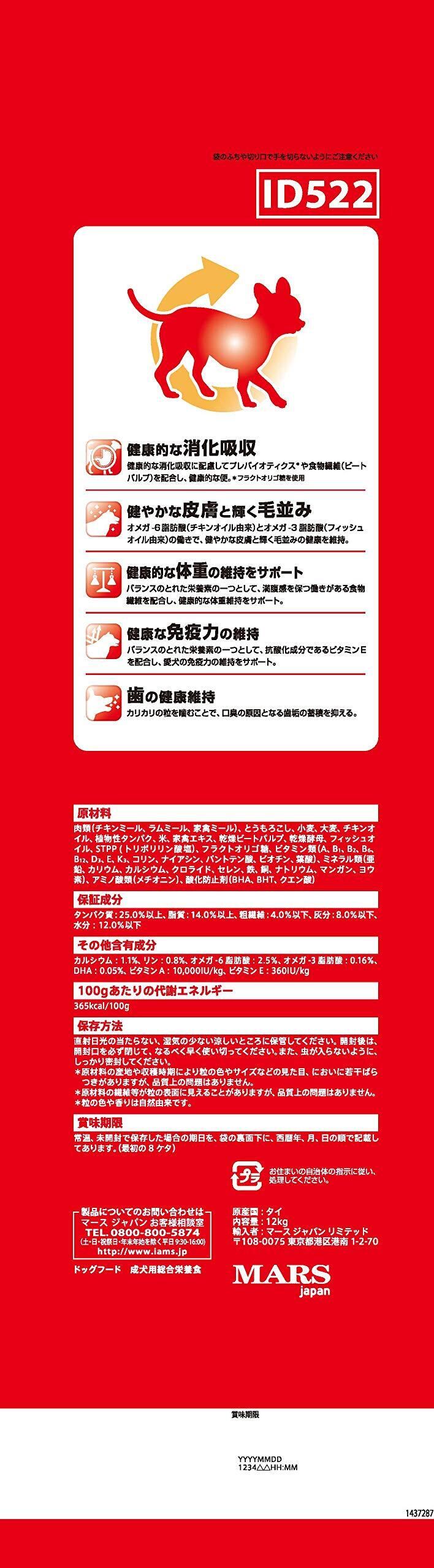 アイムス (IAMS) ドッグフード 成犬用 健康維持用 小粒 ラム&ライス 12kg
