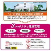 バイオジェニックスとして「乳酸菌」「納豆菌」、プレバイオティクスとして「フラクトオリゴ糖」を配合。「乳酸菌」「納豆菌」「フラクトオリゴ糖」の3つのチカラで愛犬の腸内フローラを整え、毎日の健康維持をサポートします。