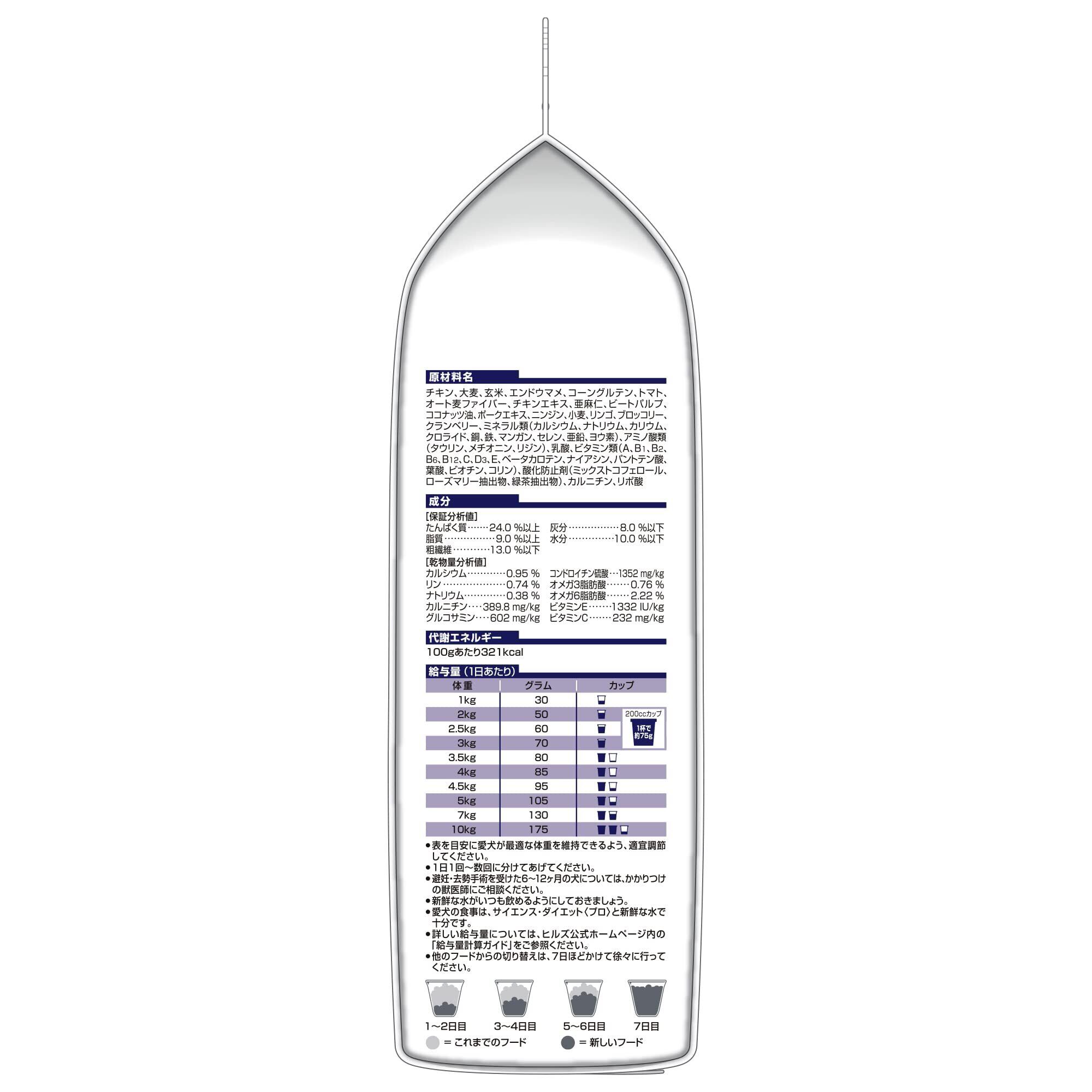 賞味期限:パッケージ裏面に直接印字されている数字、上段の初めの2桁が月、次の4桁が年を表します。例)102020→2020年10月 愛犬の食事は、サイエンス・ダイエットと新鮮な水で十分です。新鮮な水がいつも飲めるようにしておきましょう。他のフードからの切り替えは、7日ほどかけて徐々に行ってください。