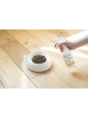 3ペットの体毛に付着した臭いには、しっとり濡れる程度にスプレーした後、ブラッシング、又は布で拭いてください、毛づやもよくなります。