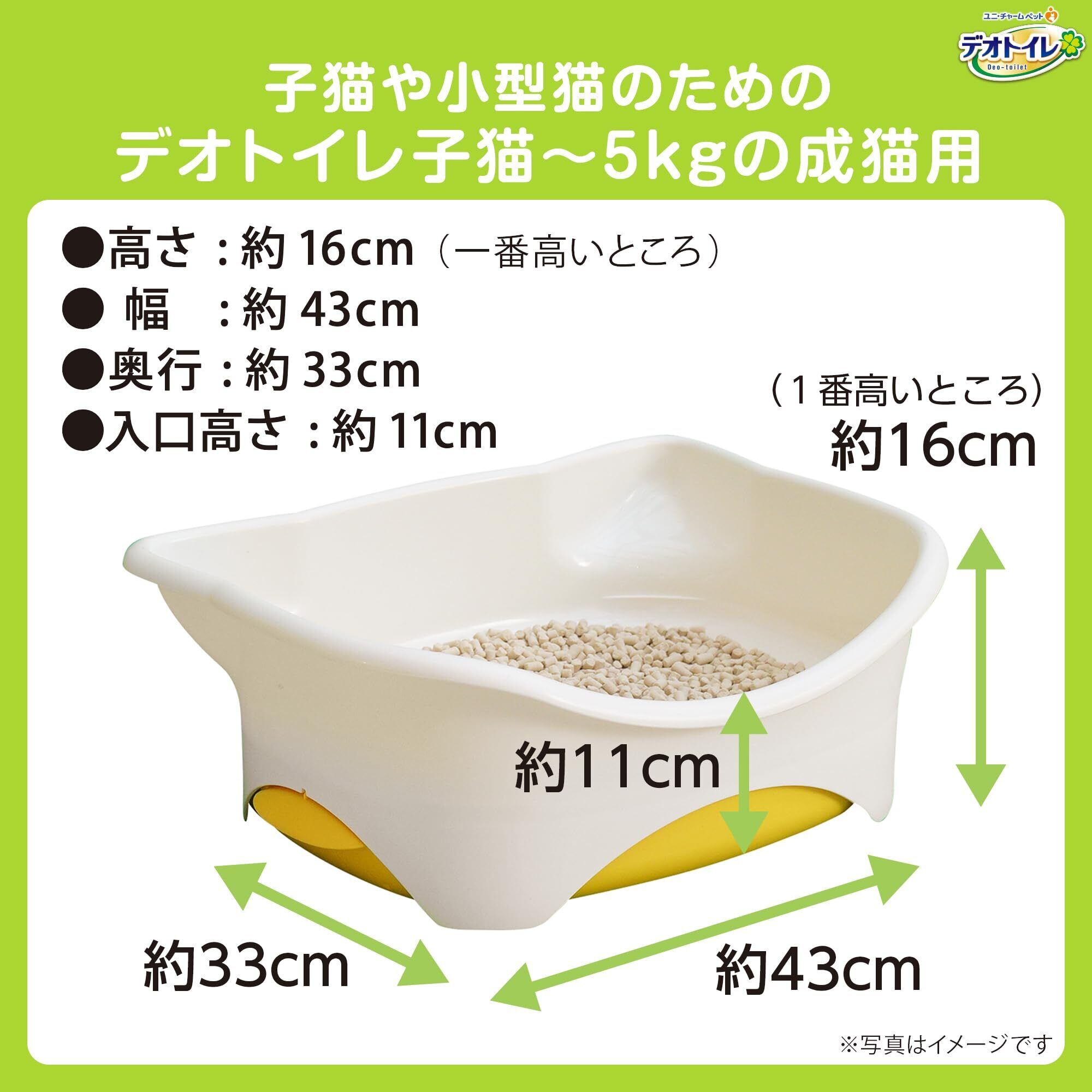 ニオわない&キレイ続く(※1)猫用のシステムトイレ ・99.9%抗菌(※2) ・高さ12センチの低めの入口で、子猫でも出入りしやすい ・ケージにもすっきり入る、コンパクトサイズ ・シートは週1回(※1)、サンドは月1回交換(※1)でお手入れカンタン ※1 愛猫1頭(体重5kgまで)使用時。 ※2 第三者機関による消臭・抗菌サンド、消臭・抗菌シートの抗菌性試験結果。すべての菌を抑制するわけではありません。