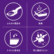 ペットの体型にあった容器に5~7cm位の厚さで平らに敷き詰めます。おしっこをすると、濡れた部分が柔らかく固まります。その部分だけをスコップで取り除き、同量の猫砂を補充してください。