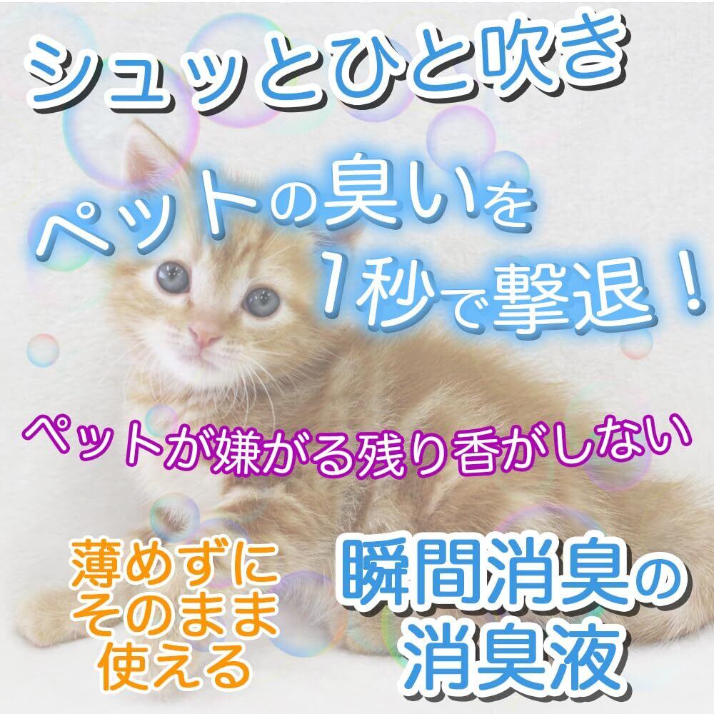 カーテン、衣類、靴の臭いに 犬、猫、亀、ハムスター等のペット類に 松、椿、かたばみより抽出したエキスが気になる臭いを消す