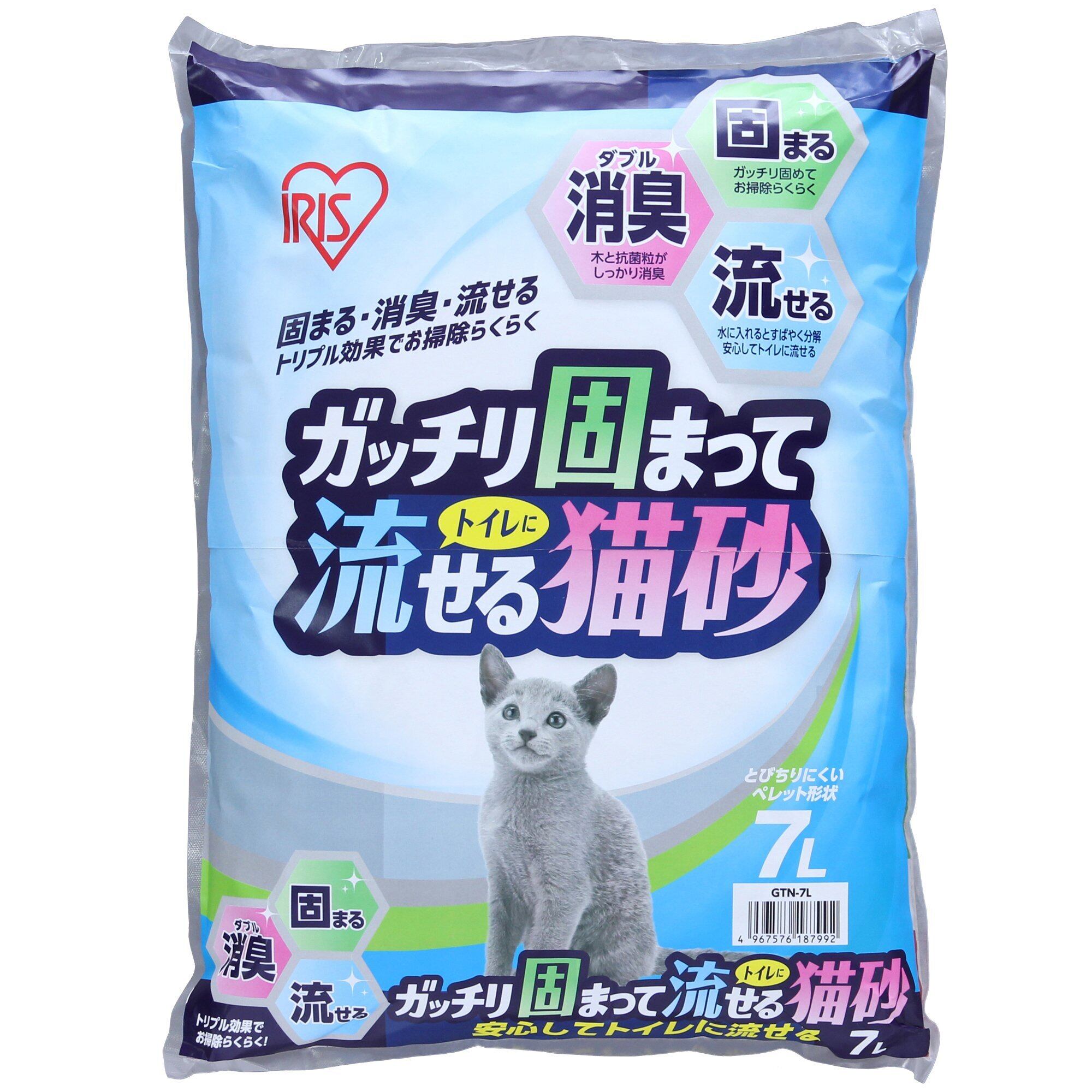 アイリスオーヤマ(IRIS OHYAMA) ガッチリ固まってトイレに流せる猫砂 ダブル消臭 7L×4袋 (まとめ買い)