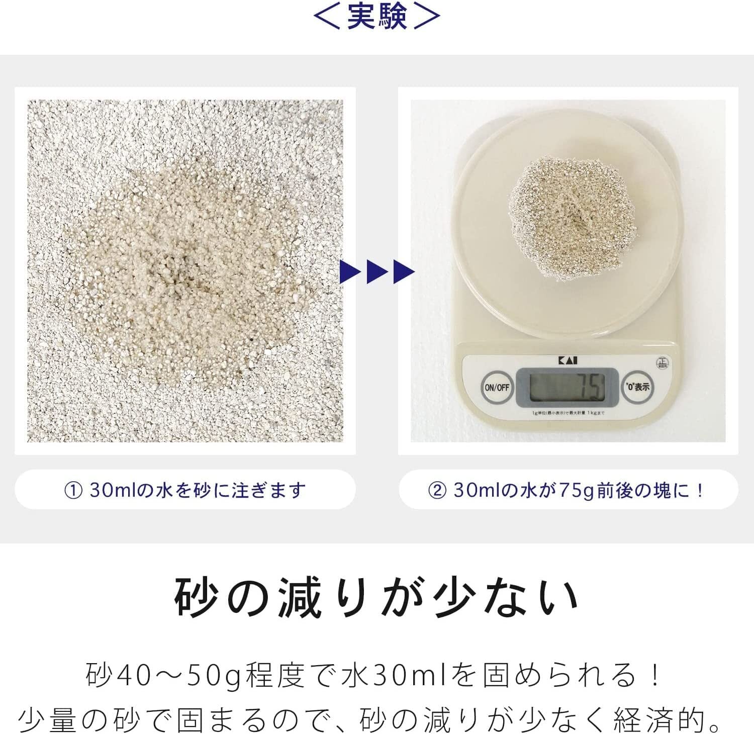 脱臭、吸収、凝固 イタリア製の最高級鉱物系猫砂、セリームバイオサンドホワイト。小粒でサラサラな砂は、ベビーパウダーの香りがします。少ない量でしっかり固まるので、スコップでカンタンにお掃除が出来ます。白い粒は尿の色を見て健康管理が出来るのが便利です。