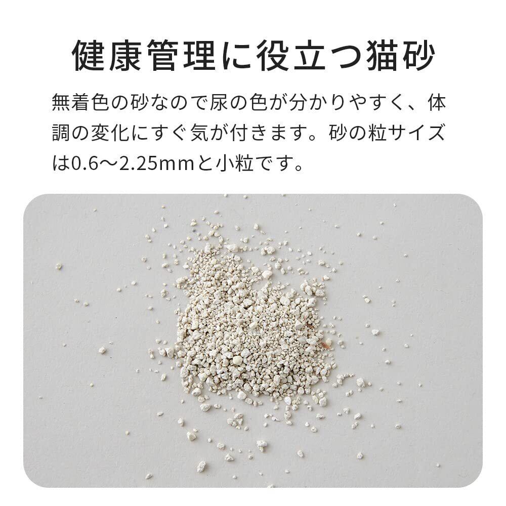無着色・固まるタイプの鉱物系の猫砂なのでお手入れラクラク。