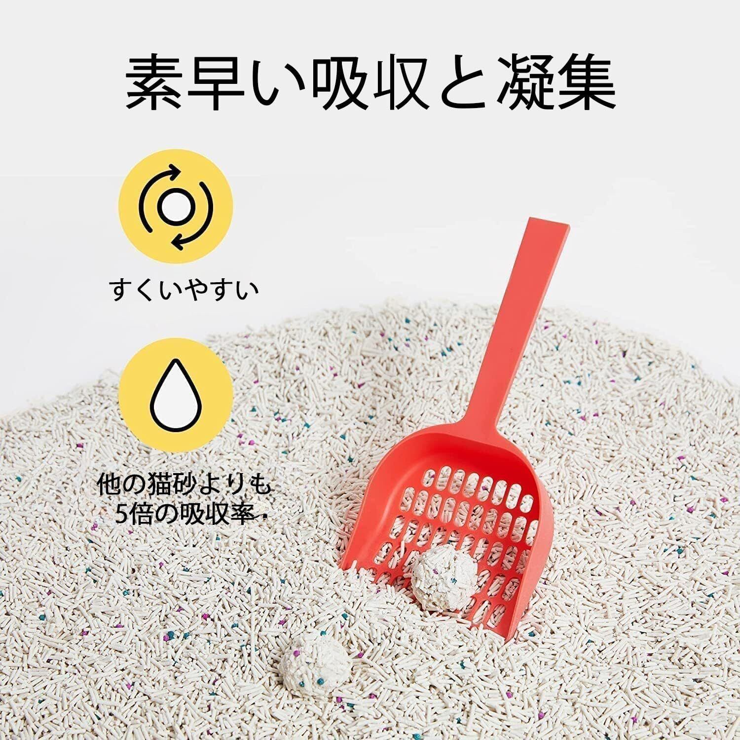 【瞬時に固まる猫砂】:水分吸収後、たったの3秒で猫砂が固まり、瞬時に不快な臭いを吸着。これにより、猫ちゃんのトイレの清潔さを維持し、快適な環境を提供します。