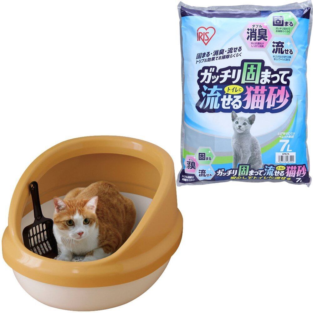 アイリスオーヤマ 猫トイレ 猫 トイレ ハーフカバー (スコップ付き) 三毛 P-NE-500-H