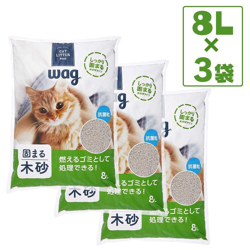 [ブランド] Wag 無香 木製の消臭猫砂 8L×3袋 24L (ケース販売)