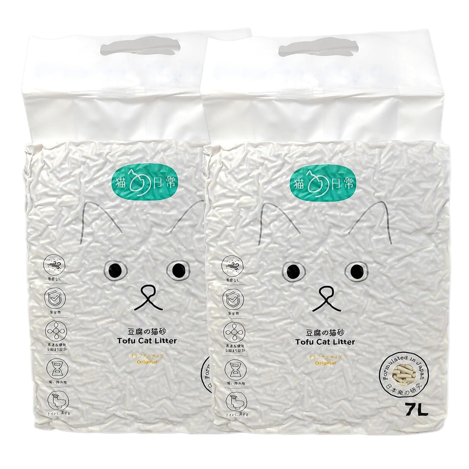Gatitos 猫砂 おから 固まる 消臭 燃える/トイレに流せる猫砂 飛び散らない おからの猫砂 天然素材 真空パック 豆腐猫砂 7L/*2袋