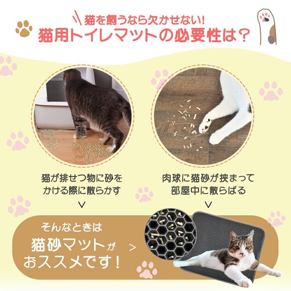 【防水底層防カビ】 上層は非毒性EVA材質、底層は防水デザイン。 湿気を吸収し、カビの発生や臭気の拡散を抑制するために独立気泡構造を採用しています。 安全に配慮した滑り止め機能付き! 【お手入れが簡単】 従来の猫砂マットと比較して、お手入れの時間と労力を節約します。 掃除機、ブラシを使うことで簡単に掃除できます。 また、水洗いでき、濡れたスポンジやタオルで拭いても綺麗になります。