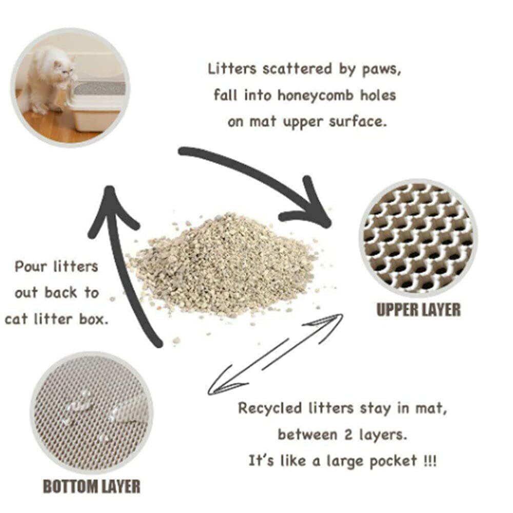 【非毒性EVA材料】猫砂マットは、軽量で耐久性があり、無毒性のEVA素材で作られております。素材は柔らかく耐久性があり、猫は歩いて快適であり、猫の爪で簡単に傷ついていません。