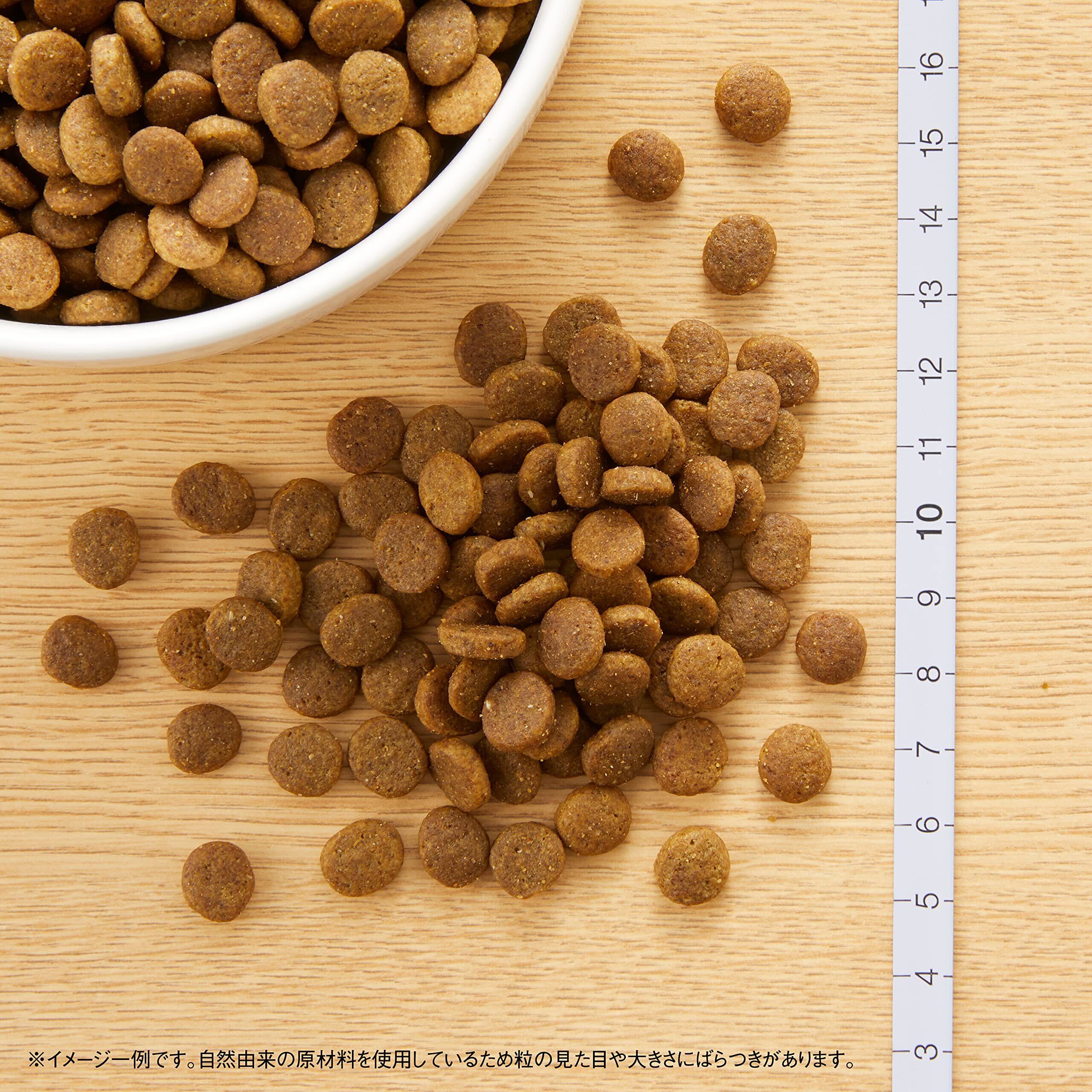 【給与量】体重1kg:30g(200ccカップ0.3)、2kg:45g(200ccカップ0.5)、3kg:60g(200ccカップ0.6)、4kg:75g(200ccカップ0.8)、5kg:85g(200ccカップ0.9)、6kg:100g(200ccカップ1)、7kg:110g(200ccカップ1.1)、8kg:120g(200ccカップ1.2)、9kg:135g(200ccカップ1.4)、10kg:145g(200ccカップ1.5)