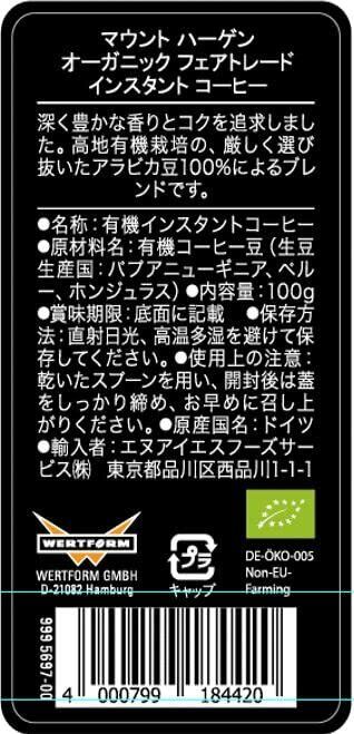 マウントハーゲン オーガニック フェアトレードインスタントコーヒー100g(有機インスタントコーヒー)