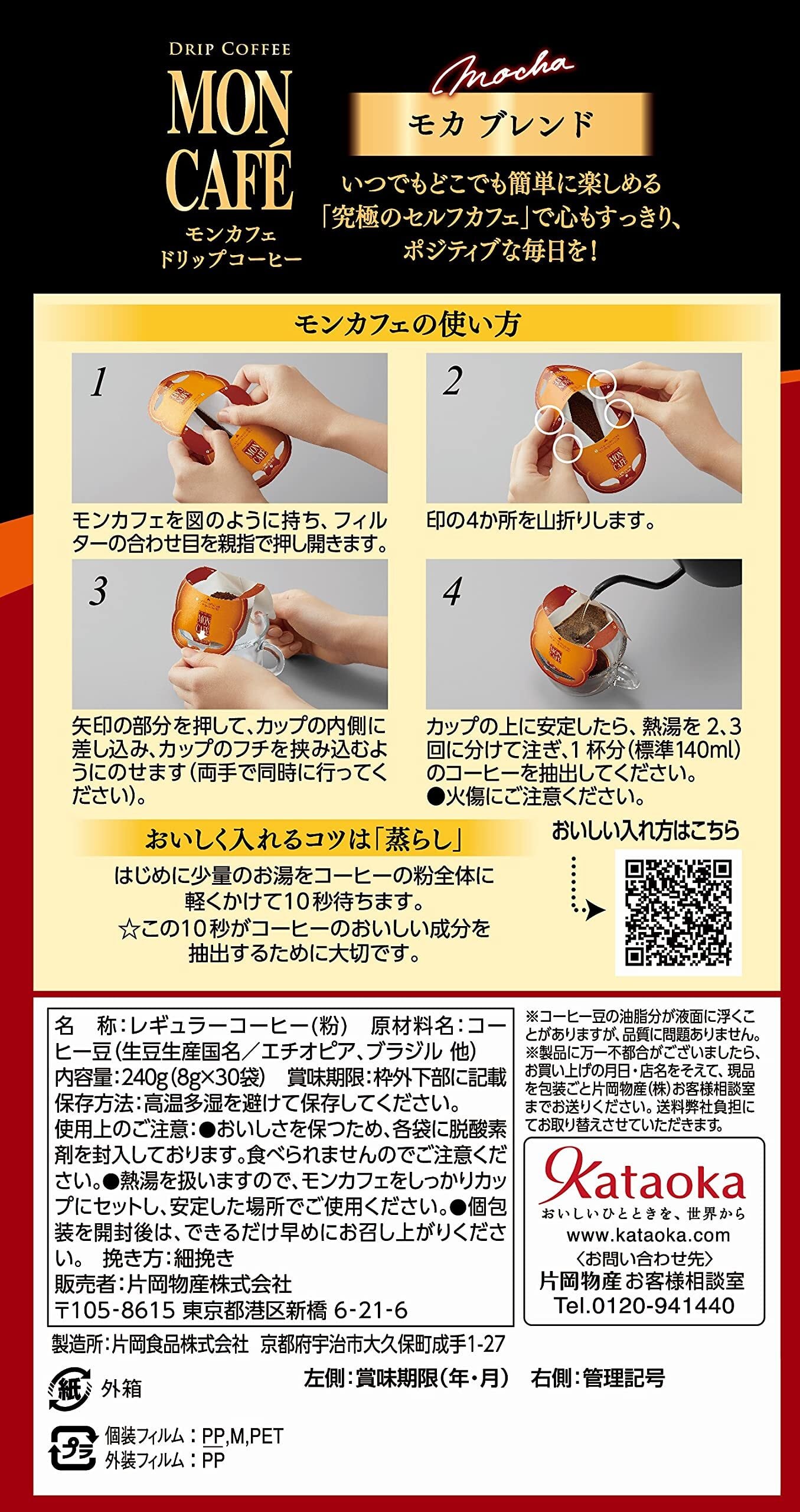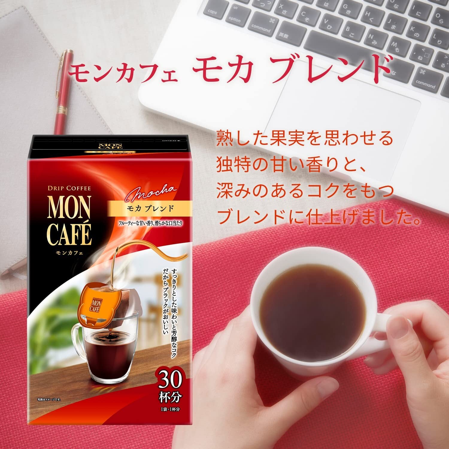 熟した果実を思わせる甘い香りと、深いコクをもつブレンドに仕上げました。挽きたてのコーヒー豆を、すばやくパックし、大切な香りをしっかり封じ込めた『モンカフェ』。ブラックでもおいしい、クリアな味わい。引っかけやすく、注ぎやすい、一杯ずつの個包装ドリップタイプ コーヒー。【大容量&特大&お徳用】