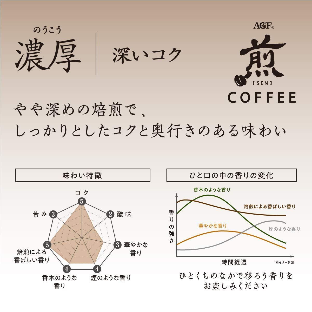 AGF(エージーエフ) 「煎」 レギュラーコーヒー プレミアムドリップ 濃厚 深いコク 20袋は、厳選したアラビカ豆を100%使用し、1杯あたりのコーヒー粉量も10gとたっぷり使用。やや深めの焙煎で、しっかりとしたコクと奥行きのある味わいが楽しめる中容量サイズです。